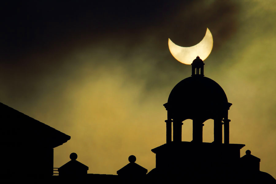 From the space to the earth thence from the earth to the sun:– Here’s a staggering collection of photographs of this year’s solar eclipse. Among the many wonderful photographs of the eclipse itself is one that works in the eclipse into an image that is a lovely photograph in its own right.